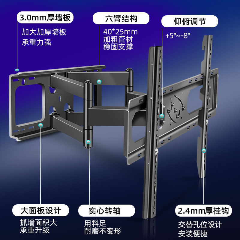 32-55 inch horizontal and vertical screen conversion wall mount 40-80 inch thickened horizontal and vertical screen conversion bracket 55-90 inch six-arm large load-bearing horizontal and vertical screen conversion 37-70 inch vertical screen telescopic bracket 90 degrees