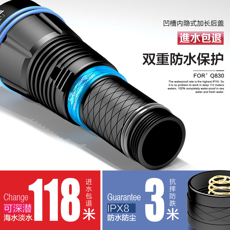 LED waterproof flashlight strong light diving MIKOZE underwater caving to catch the sea lighting outdoor spotlight long-range magnetic control