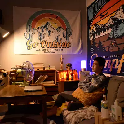 American bedside background cloth bedroom room layout ins Wind tapestry dormitory renovation wall decoration hanging cloth net red