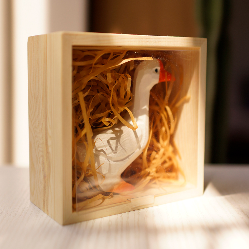 The wood small gift box does not contain a big white goose and a box containing more than one