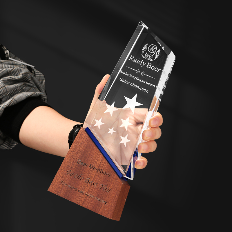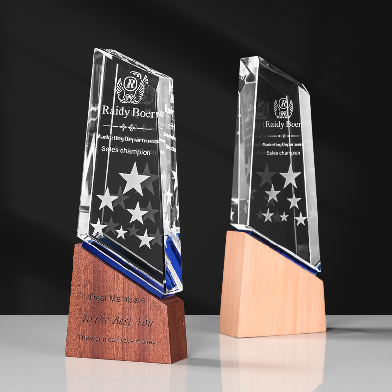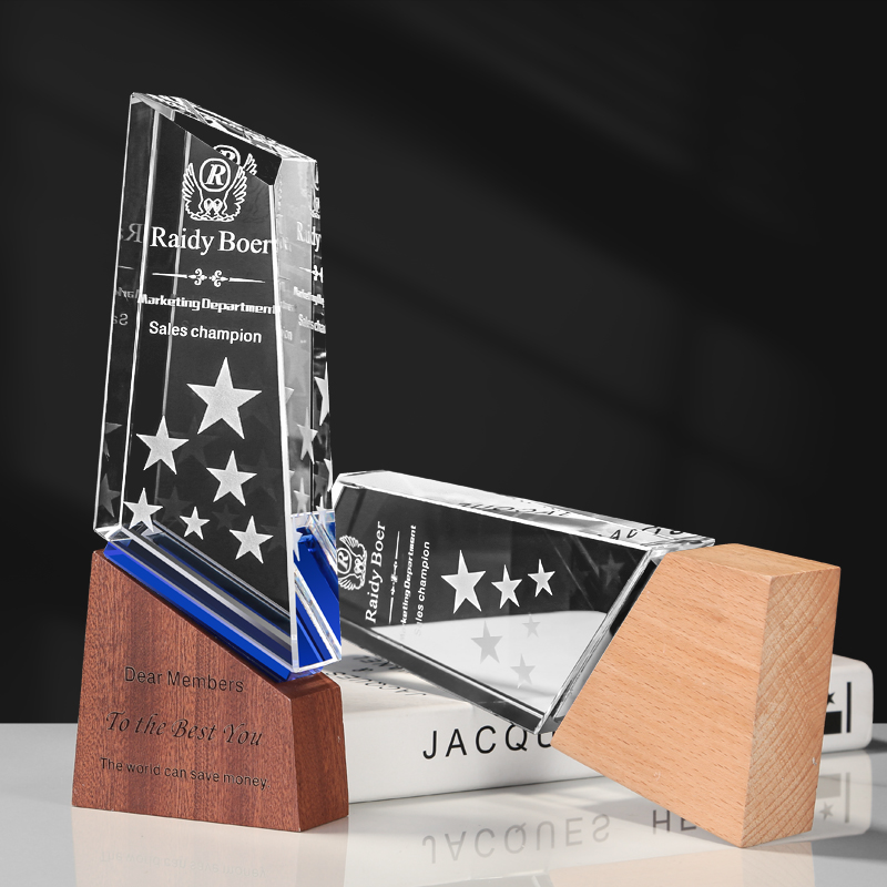 Creative Crystal Trophy Customized Wood Solid Wood Trophy Medal in-medal Engraving Word Co., Ltd. Annual Meeting
