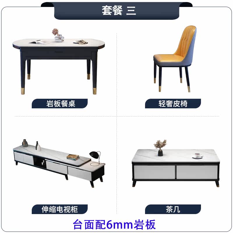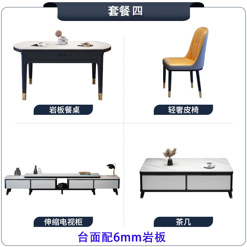Rock plate dining table and chair combination Modern simple light luxury small apartment retractable living room coffee table TV wall cabinet set