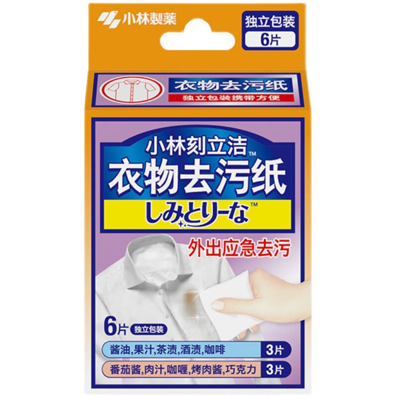 Japan Xiaolin Pharmaceutical clothing Stain Removal Paper Engraving clothes to stain portable packaging Clean care disposable wet towels