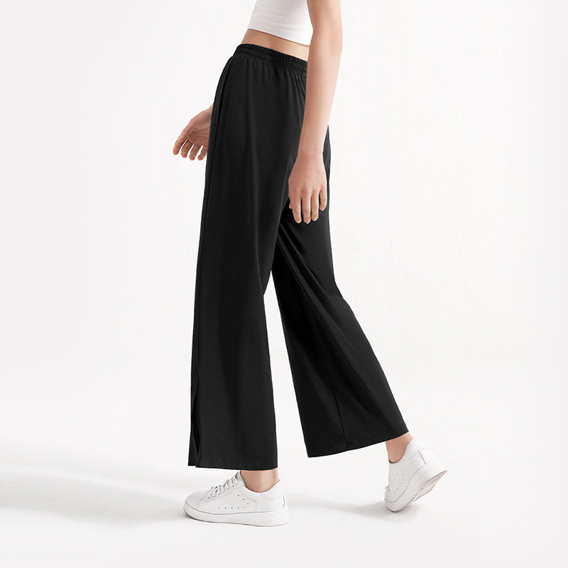 Banana ice silk sunscreen wide-leg pants women's summer thin slit pants 2022 new black casual pants drape pants