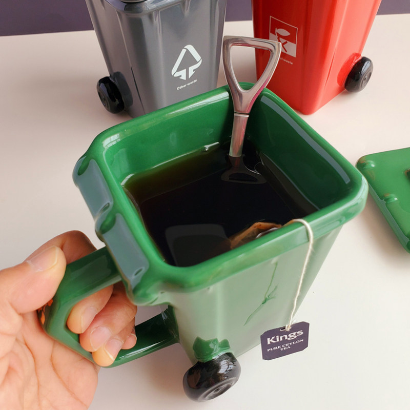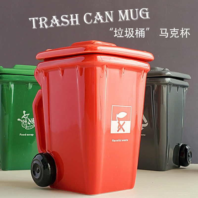 Creative mug cup trash can shape ceramic coffee cup with lid water cup personality trend high temperature funny