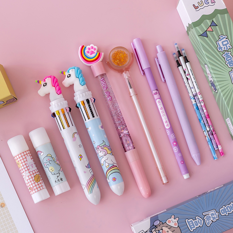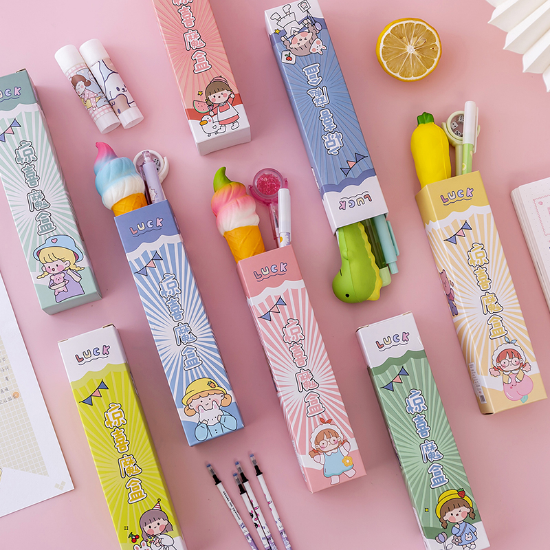 Creative cute cartoon primary school students stationery blind box pen set girl boy birthday gift set box junior high school students 2022 net red new kindergarten children whole class activities prizes school supplies