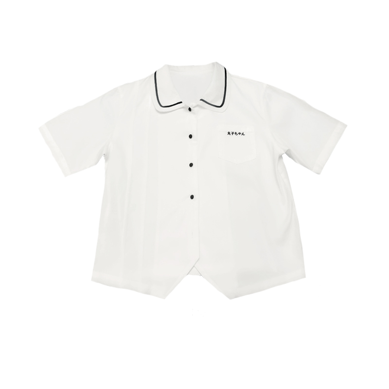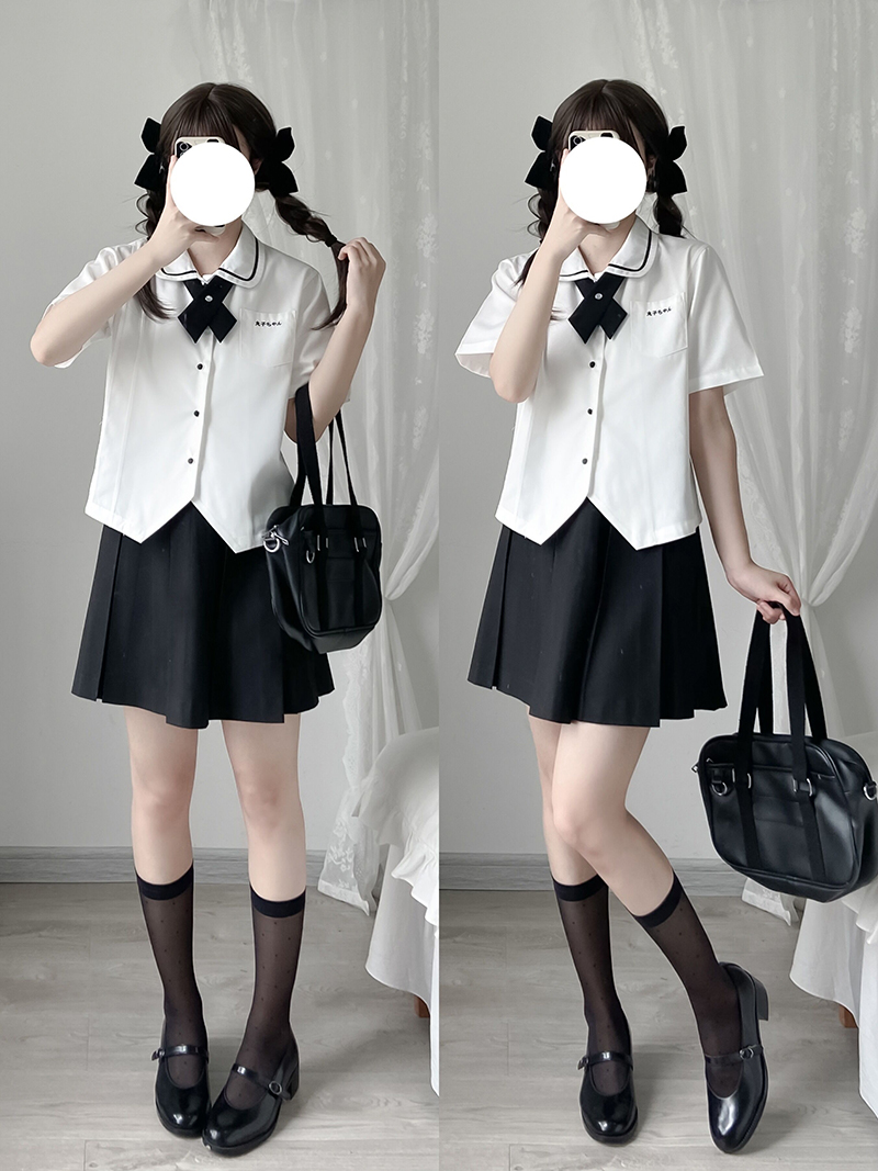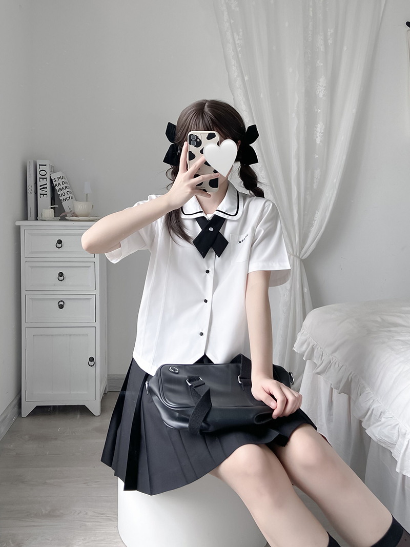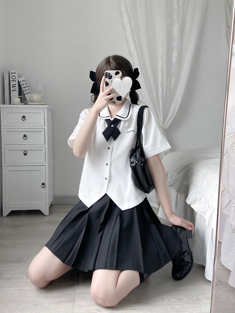 Pellet Jam Jk Uniform Original) Small Aroma) Embroidered White Base Blouse Accordion Plexu Shirt Short Sleeve Female Summer