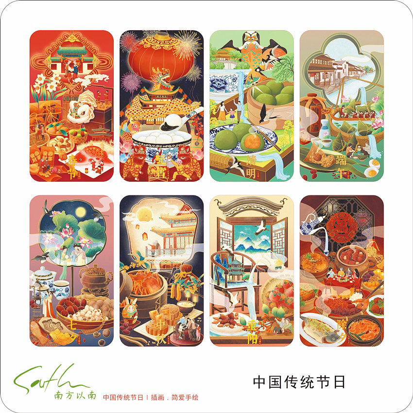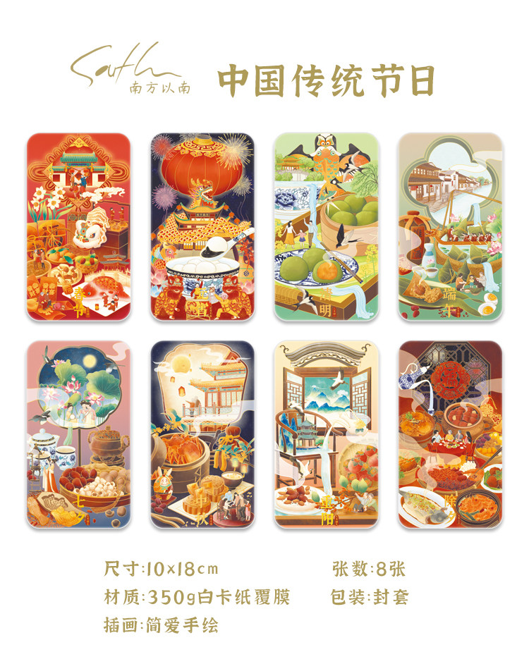 South of the South Original "Chinese Traditional Festival" Postcards Spring Festival Qingming End of the Chinese New Year's Eve