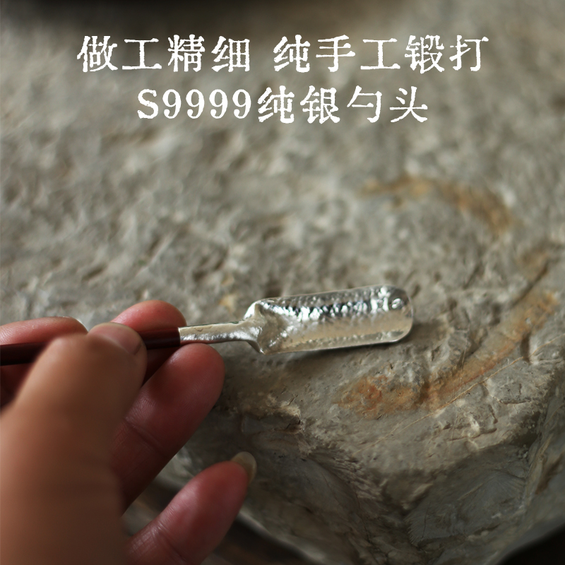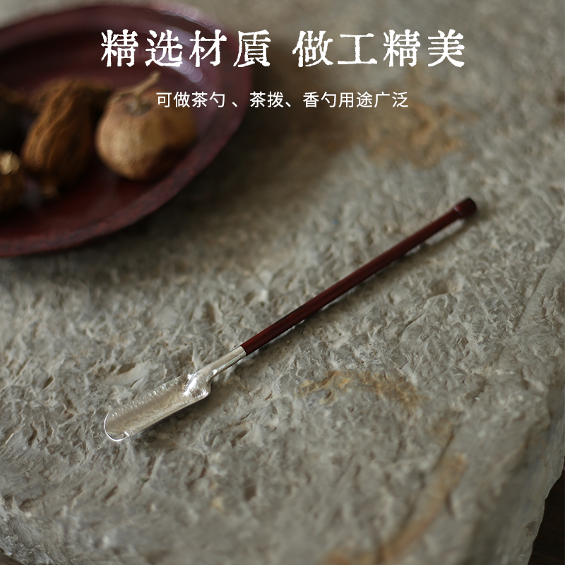 Idle Yunya to play retro hand for forging and beating small leaves purple sandalwood spoons tea spoons tea scoop tea shovel tea plus-pure silver incense pass utensils