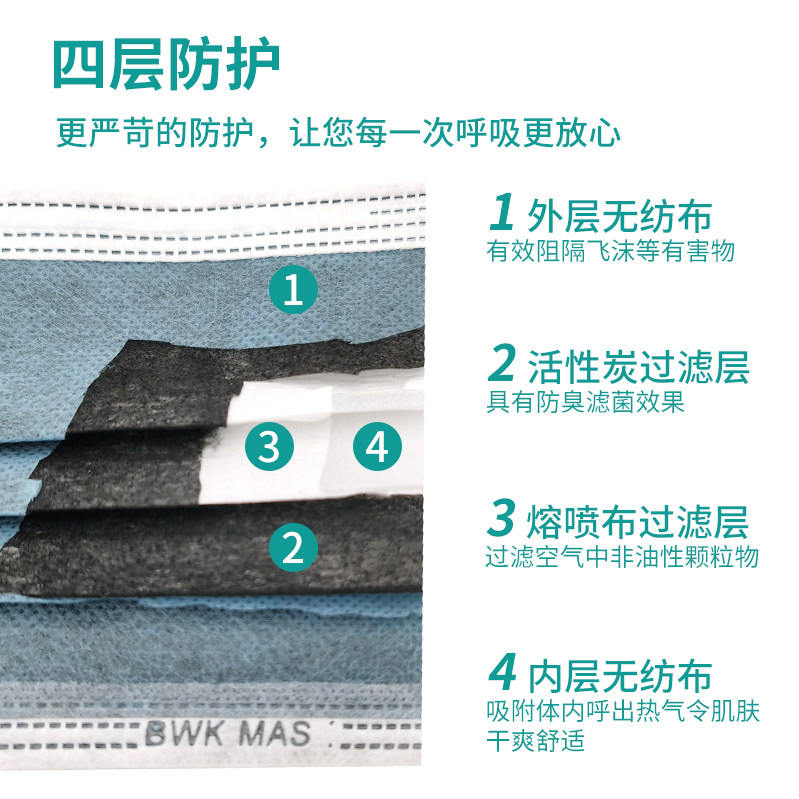 Baoweikang disposable activated carbon mask non-independent packaging four-layer non-woven fabric anti-formaldehyde dust adult F63 - Taobao
