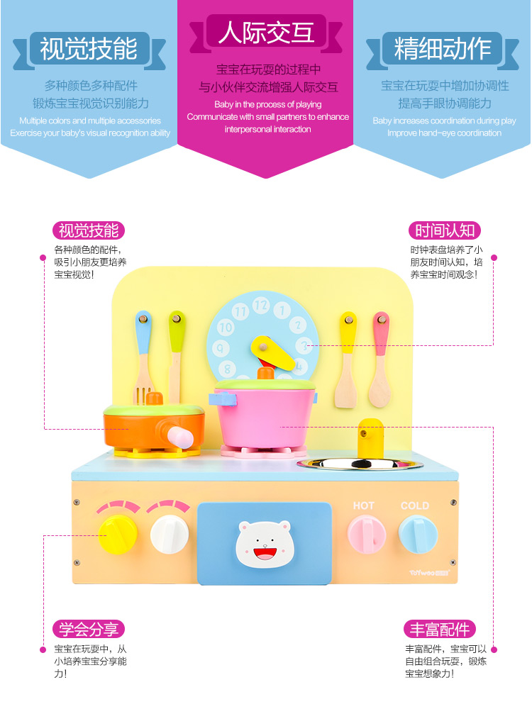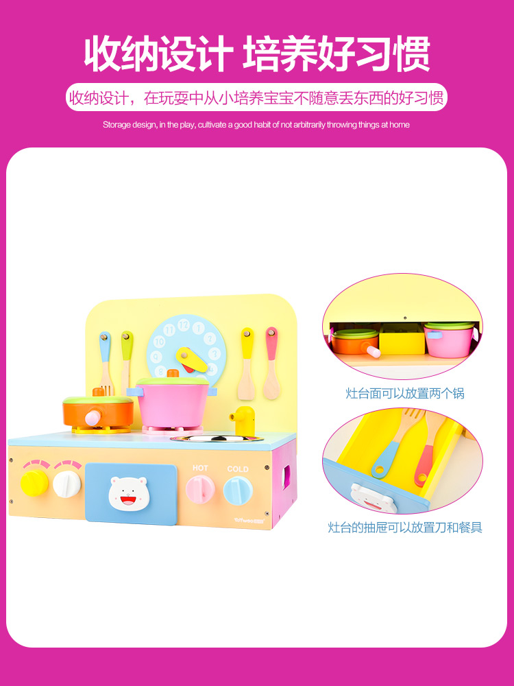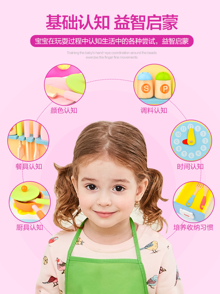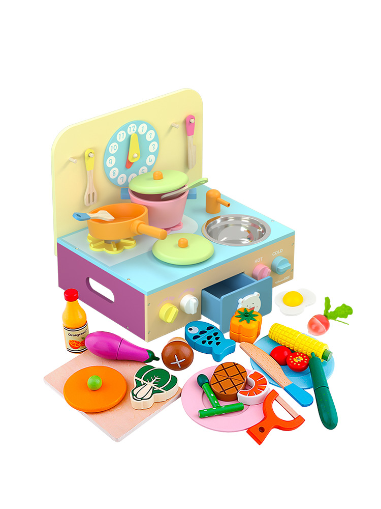 ToyWoo Wooden Kitchen Toy Cover Dress Home Wine Cheesele Children Cook Small Kitchen Gas Foci