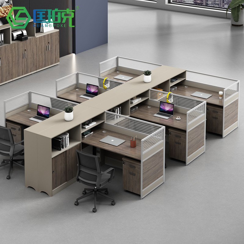 Staff desk minimalist modern screen 4 People's booth station office staff 6 people of staff table and chairs combination