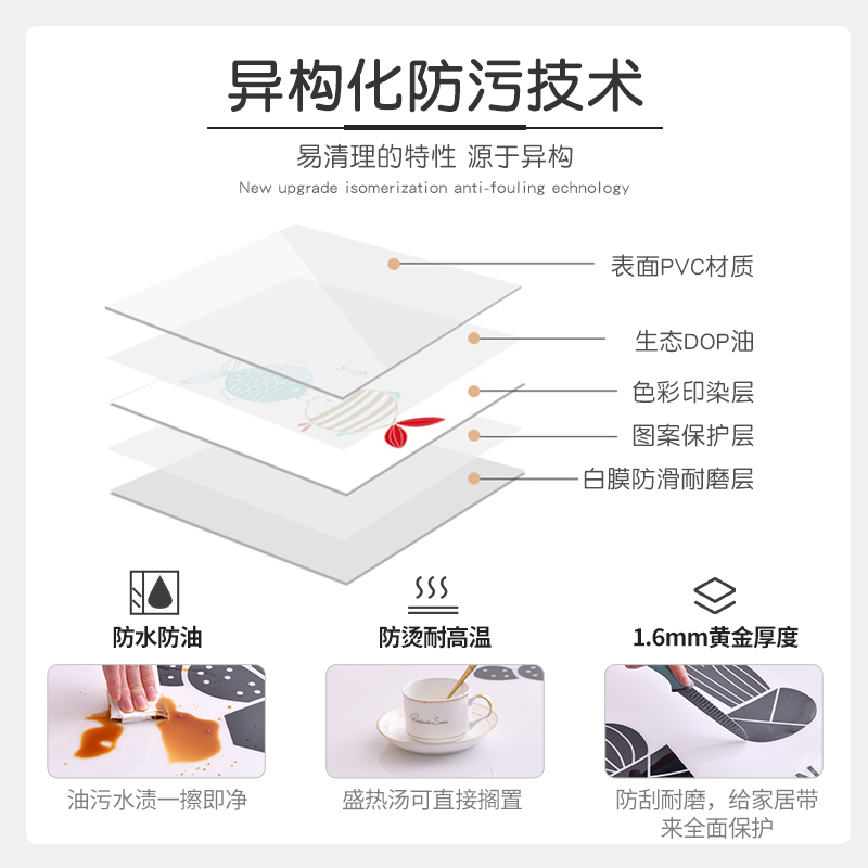 Table cloth waterproof oil and soft glass tabletop pad transparent anti-hot tablecloth advanced tea table mat