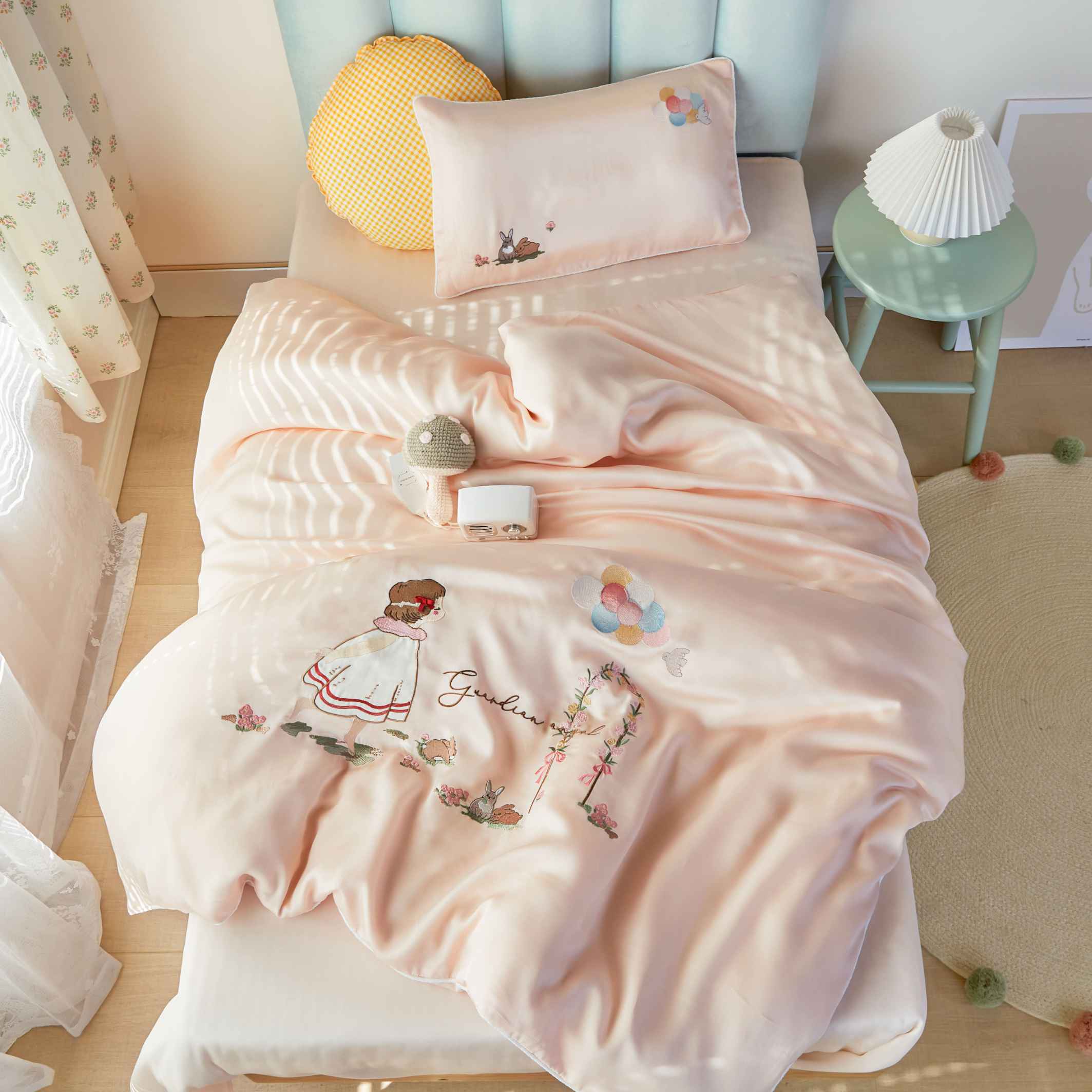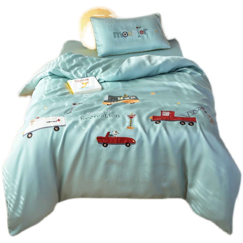 Children's 60 Tencel three-piece car embroidery ice silk quilt cover four-piece boy and girl baby bedding kit