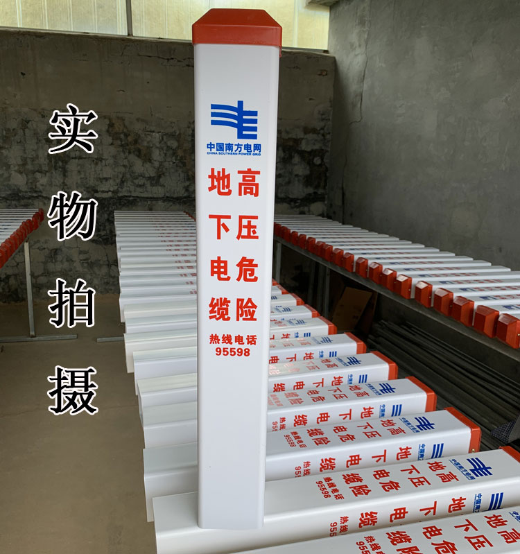 There are cables under the warning column pvc power, it is strictly forbidden to excavate the fiber optic cable gas pipeline sign underground high voltage sign pile