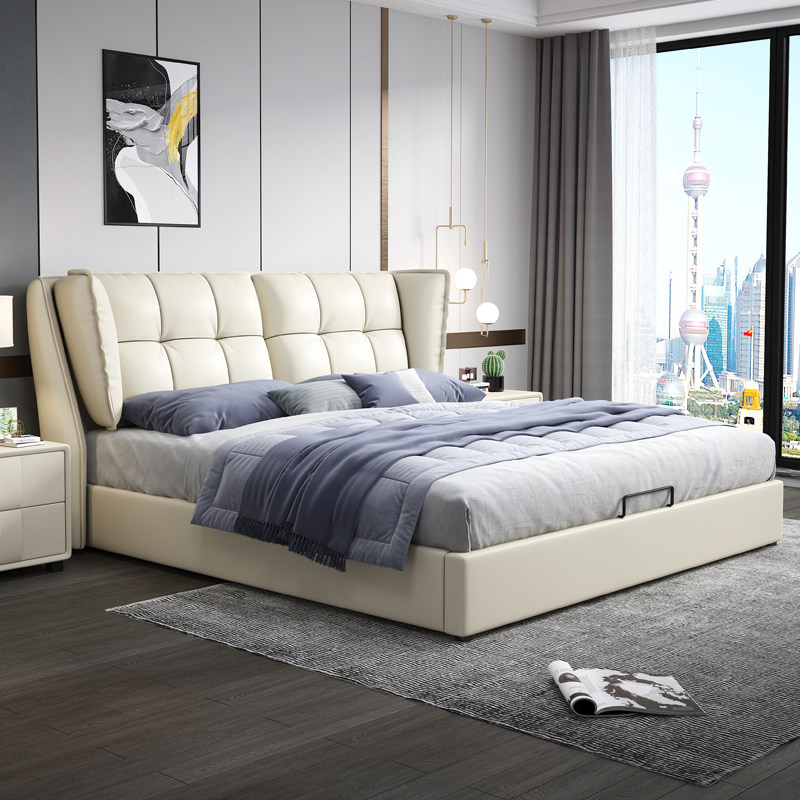 The Nordic zhen leather bed modern minimalist Double soft nuptial bed 1 8 m light luxury storage bed in the master bedroom tatami bed