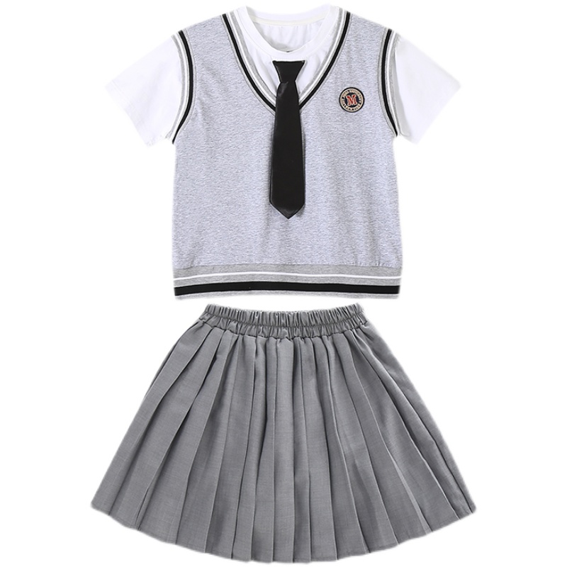 Girls' suits school uniform skirts 2022 new summer clothes children's big children's college style short-sleeved pleated skirt summer two-piece suit