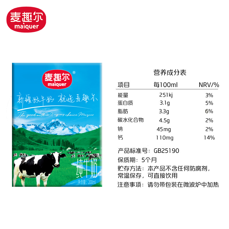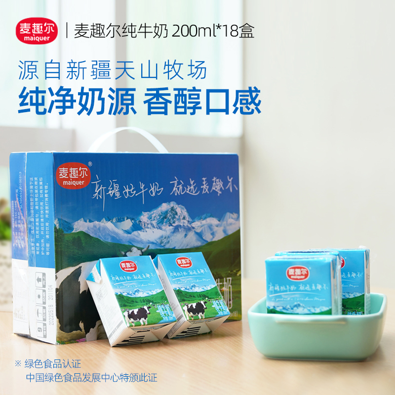 Mcanet Xinjiang Full Fat Blue Brick 3 1g Pure Milk 200ml * 18 Boxes * 2 Boxes Students Breakfast Milk Student Nutrition