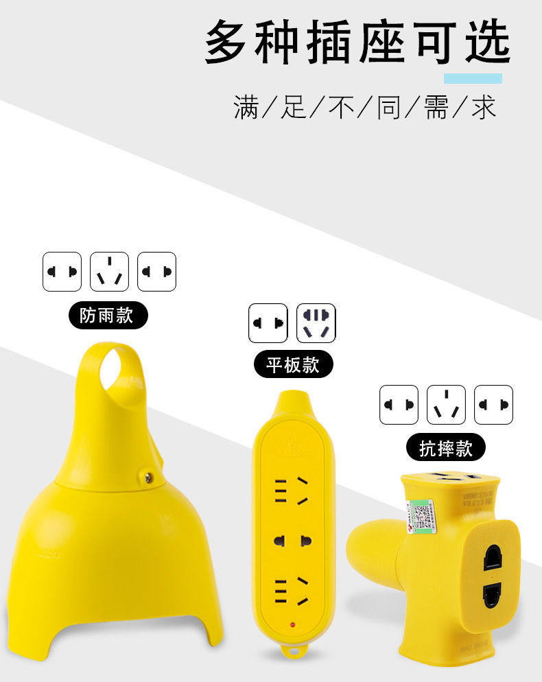 Bull Strap Wire Socket Porous Explosion Proof Anti-Fall Outdoor Electric Car Charging Extension Wire Extension Wire Plugging Jacket Wire