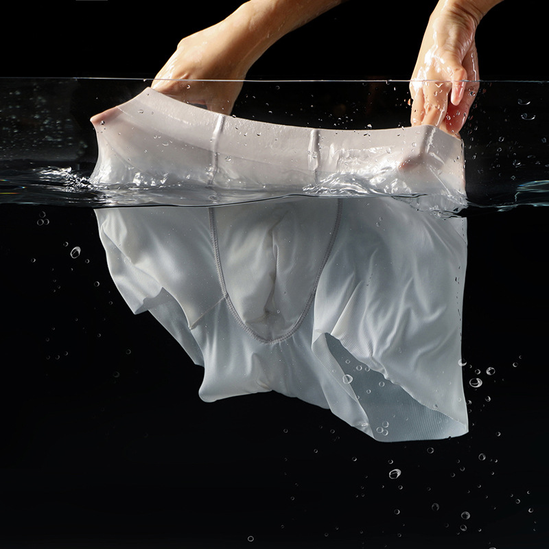 Ice-refreshing and breathable men's light and thin no-feel-cut-in-four-corner pants double layer mesh Modale crotch underpants