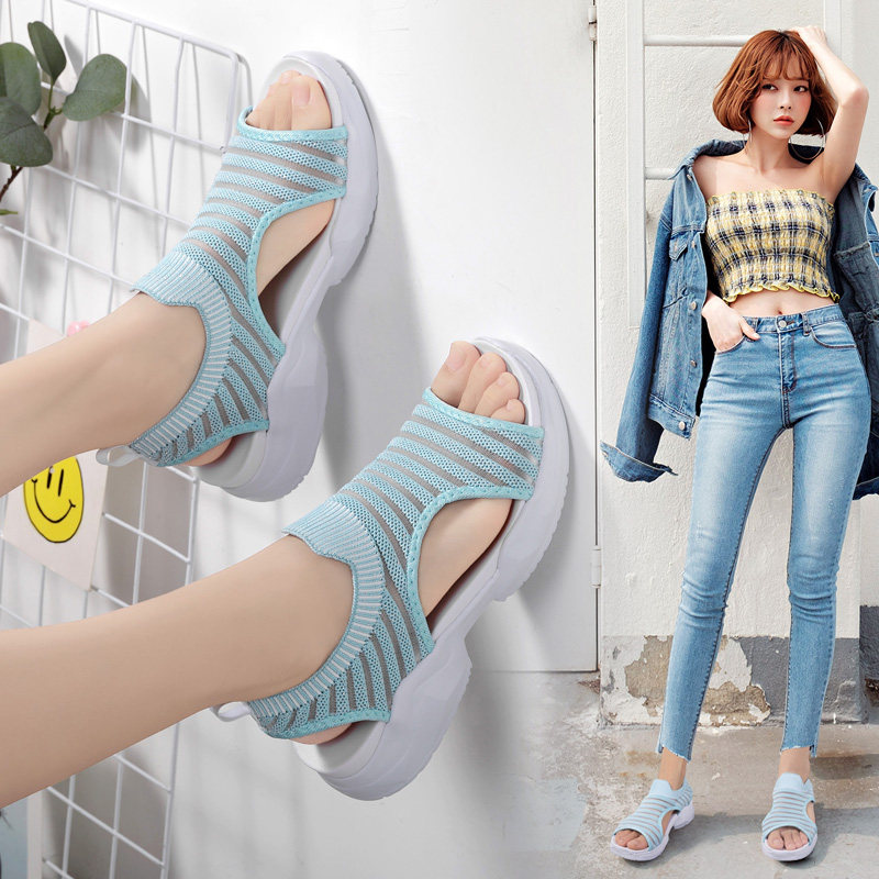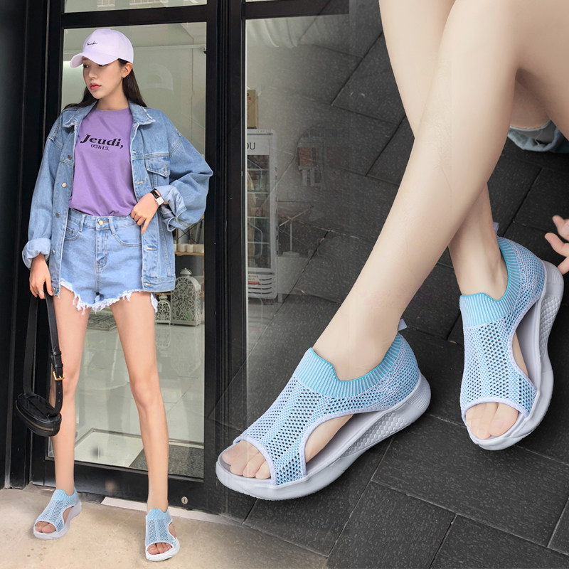 New multi-walking shoes pin duozoulu official flying woven breathable sandals women's summer outer wear hollow fairy shoes