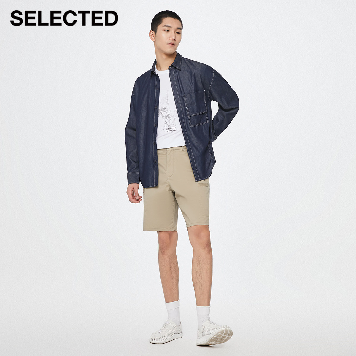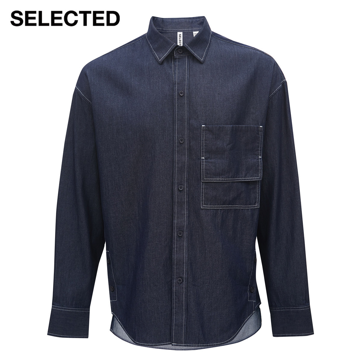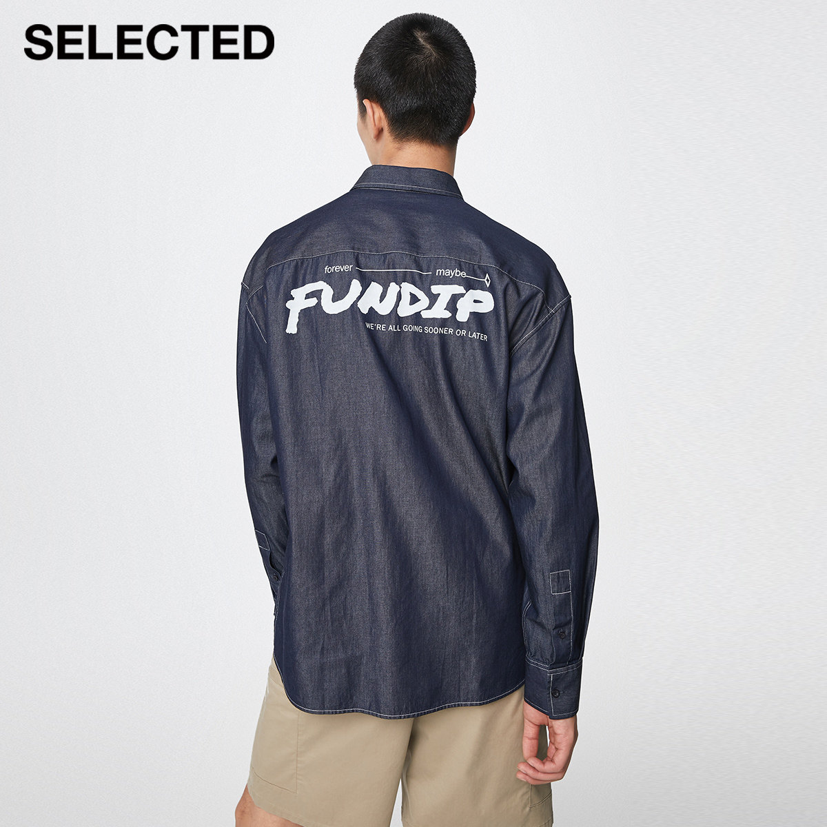 SELECTEDSELECED Autumn Winter New United Chest Pocket Printed Loose Long Sleeve Denim Shirt Man 421362001