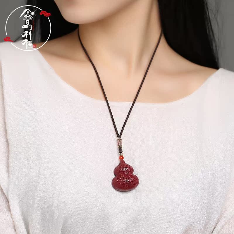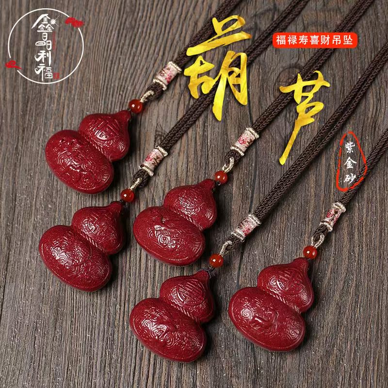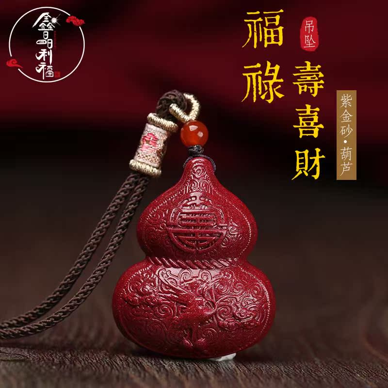 Cinnabar Gourd Pendant Fu Lu Shou Xi Cai Men and Women's Life Year Purple Gold Sand Lucky Necklace Pendant Transfer Jewelry