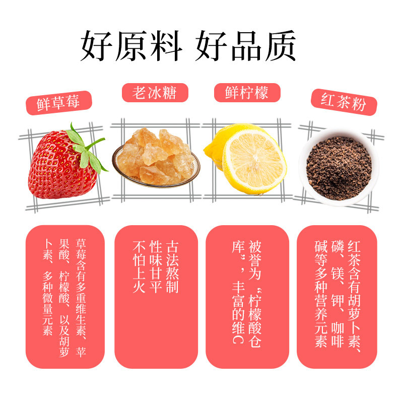 Fresh strawberry pulp Rock sugar Lemon black tea powder