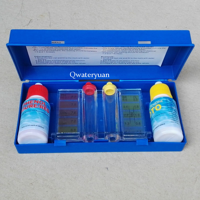 Pool water test box Ph moisturizer OTO residual chlorine value moisturizer