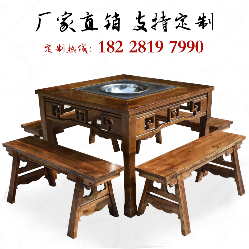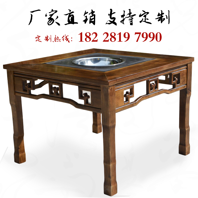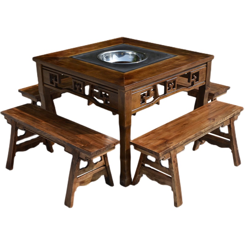 String incense pot table Solid wood Marble square table Commercial hot pot table Induction cooker one-piece restaurant dining table and chair combination