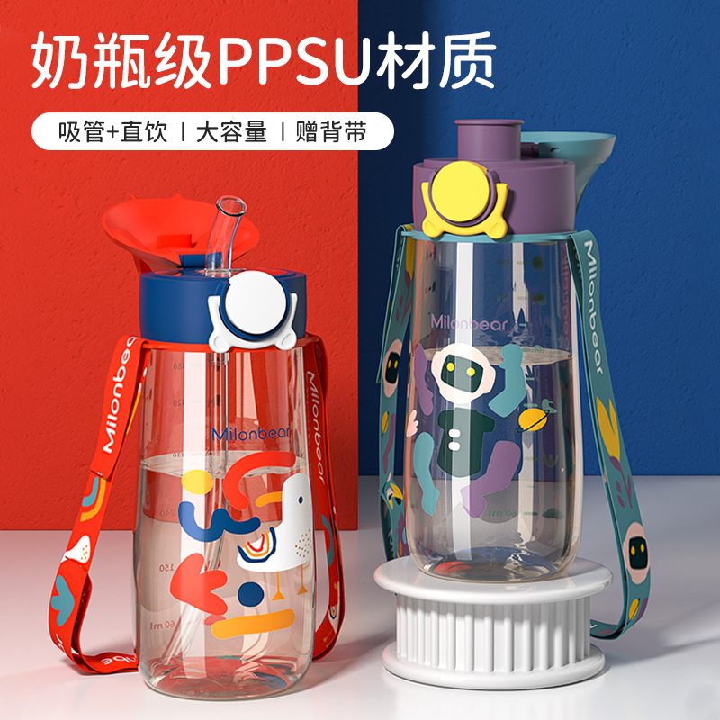 Children's water cup summer ppsu material special kindergarten baby straw kettle for school going out portable direct drinking cup
