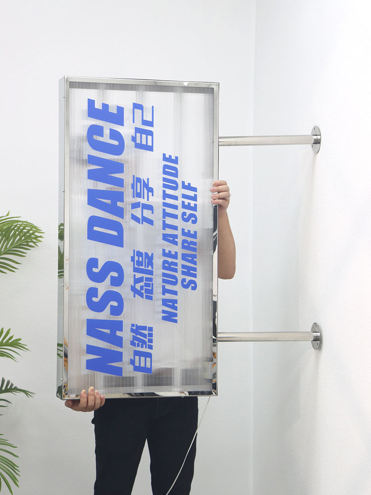 Creative Stainless Steel Corrugated Acrylic Long Iridescent Light Box Hanging Door Head Sign Set To Shine Led Advertising Plaque