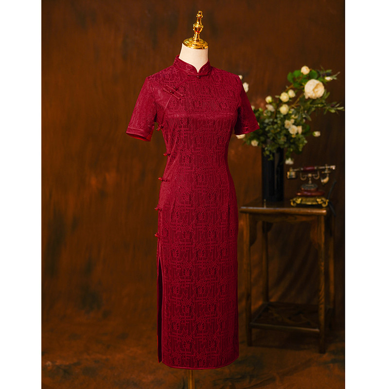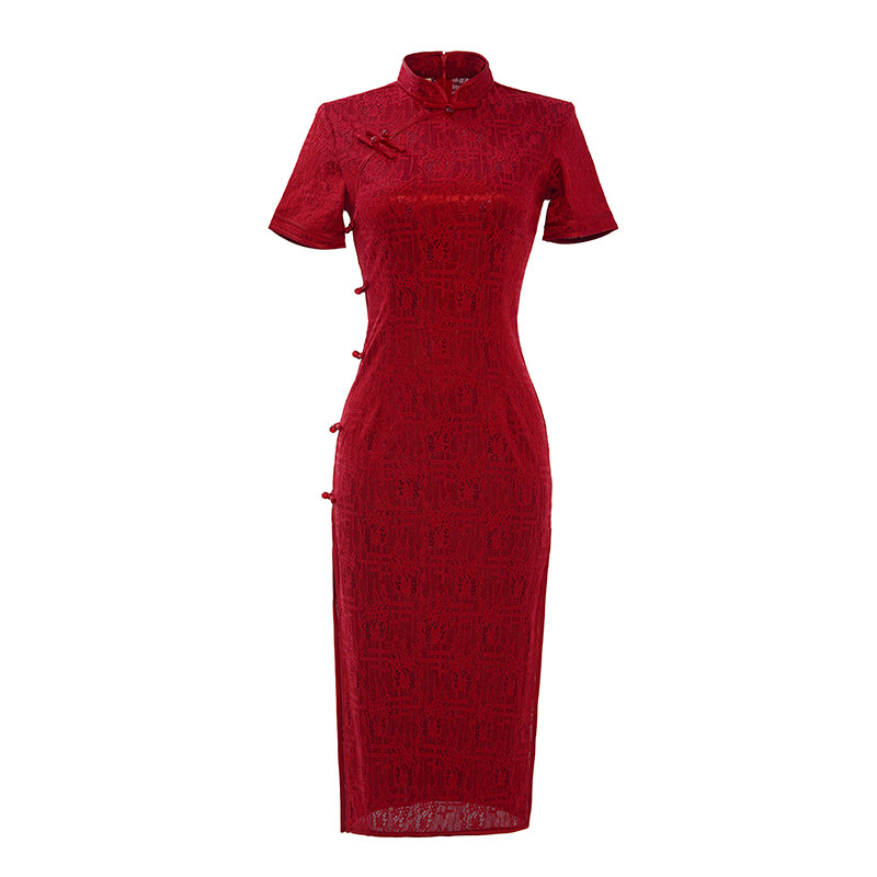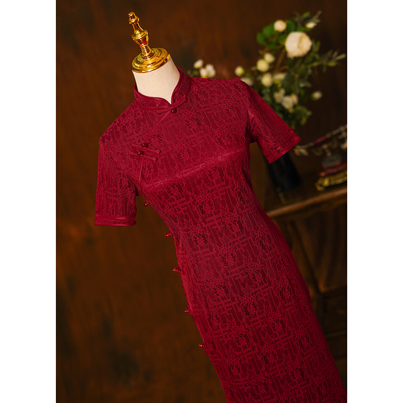 Retro lace flagrobe 2022 new high - end improvement red mother in the summer of the dress female