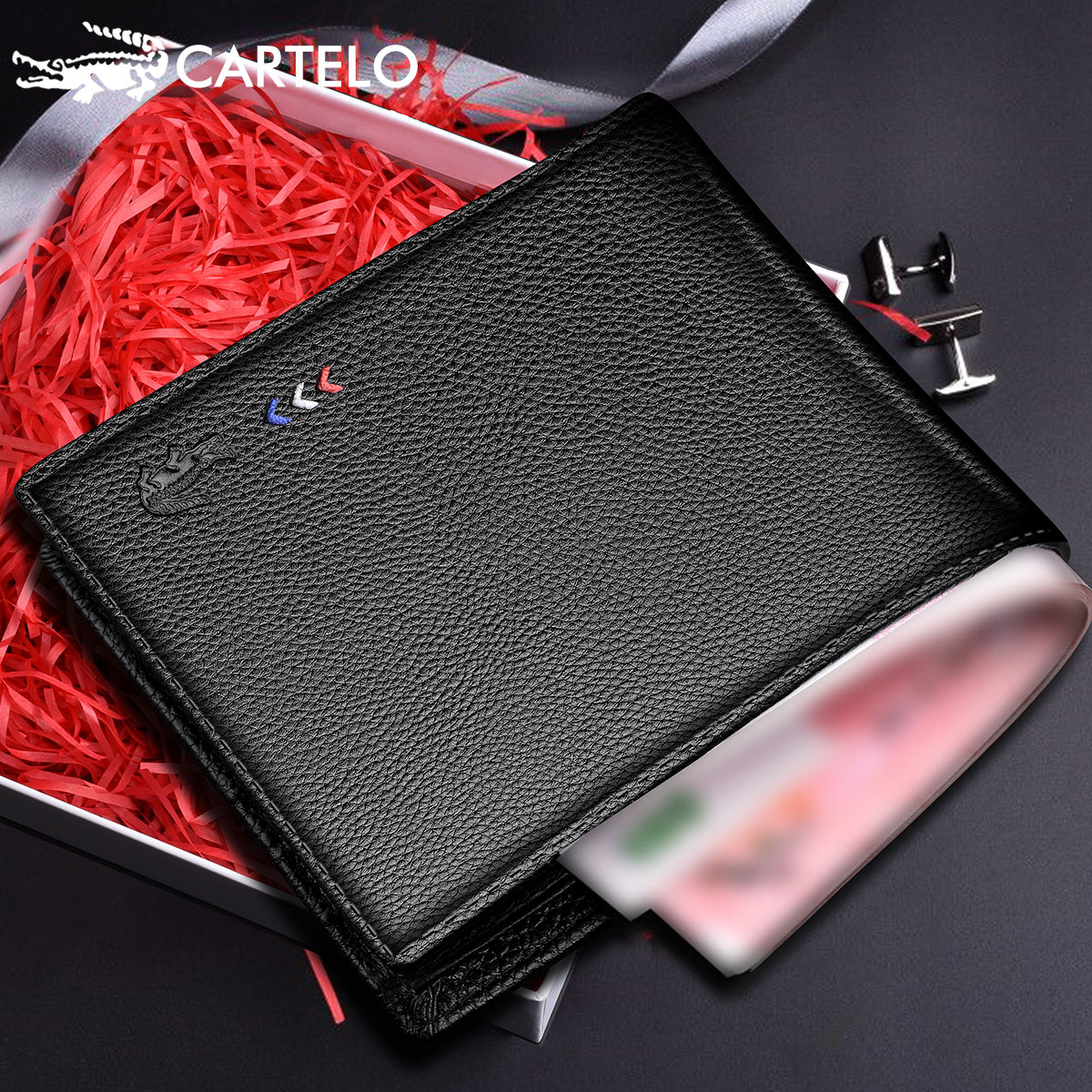 Cartelo Cadile Crocodile Men Short Leather Head Banker Wallet Wallet Male Banker Clippers