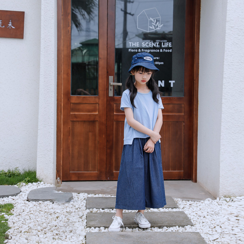 Pure Cotton T-shirt Slim Denim Wide Pants T-shirt Denim Wide Pants Suit