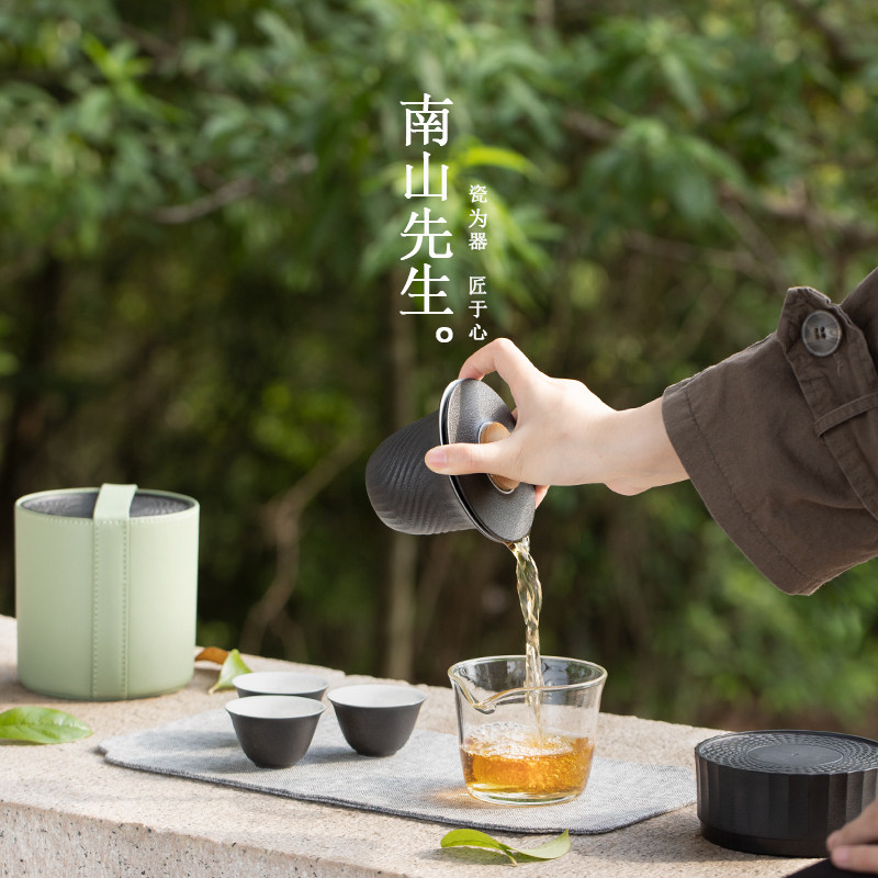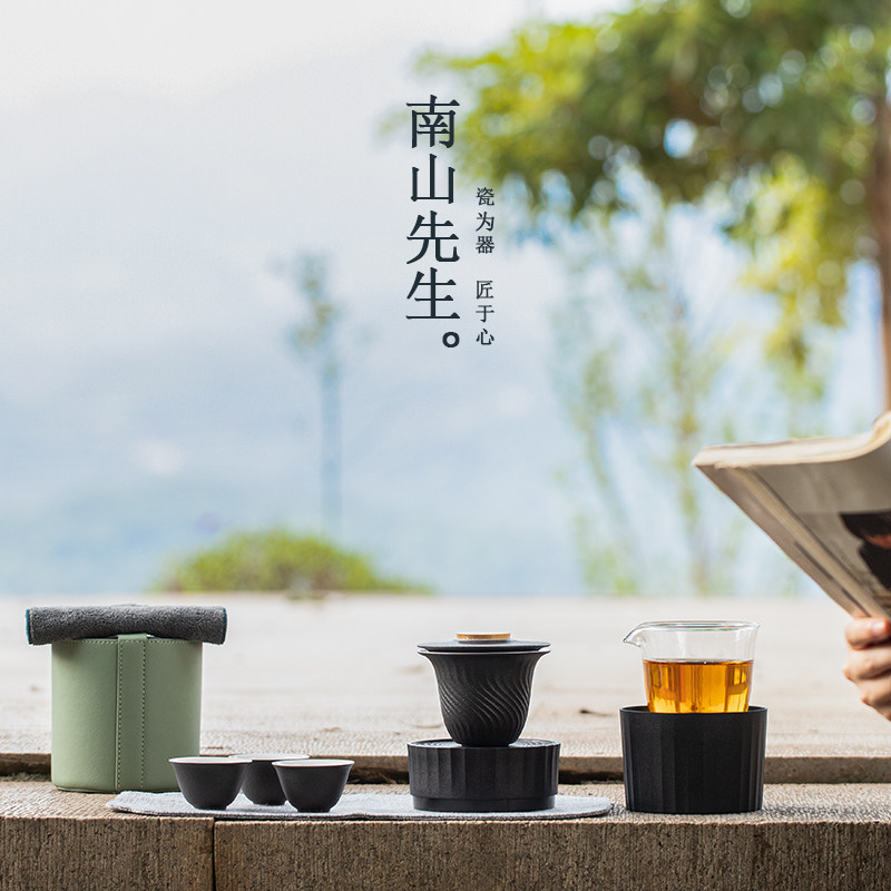 Mr. Nanshan small white cover bowl tea set portable fast customer cup travel tea set anti-scalding kung fu tea set outdoor tea
