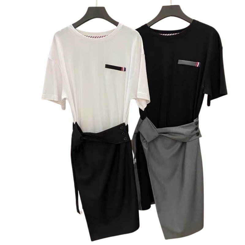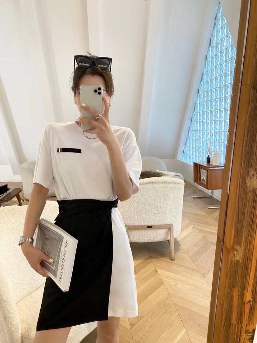 TBt-shirt suit 21 years summer riding the wind and breaking the waves sister same style tide dress irregular slit half skirt pure cotton mid-length g