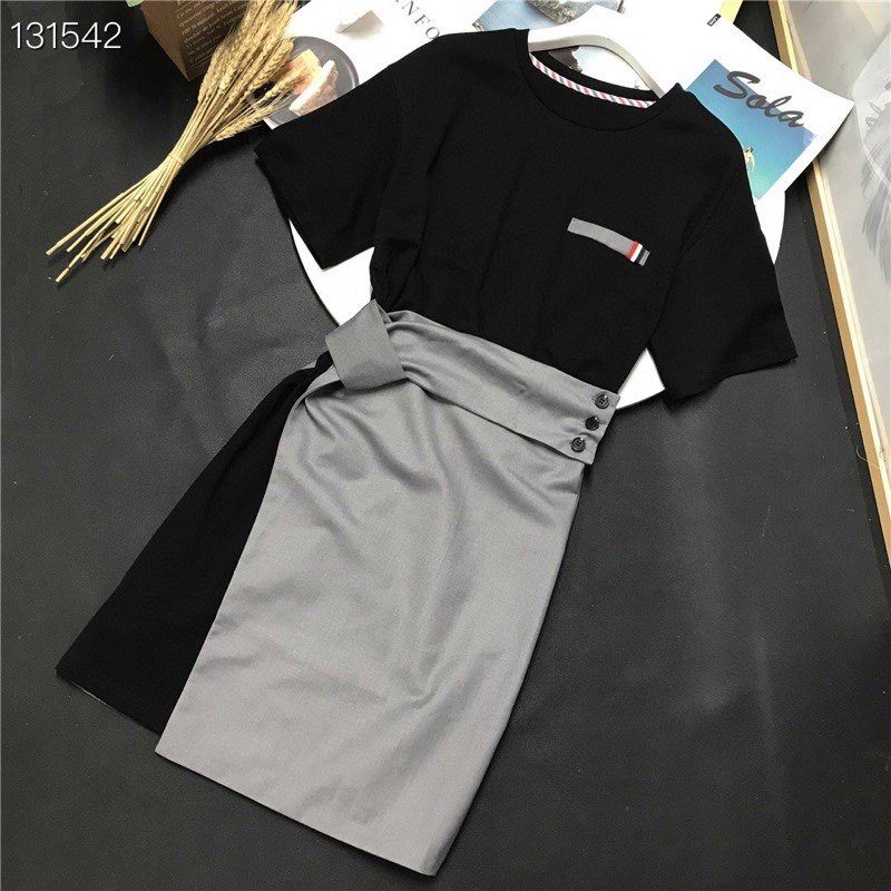 Black and gray stitching fake two pieces White and black stitching fake two pieces
