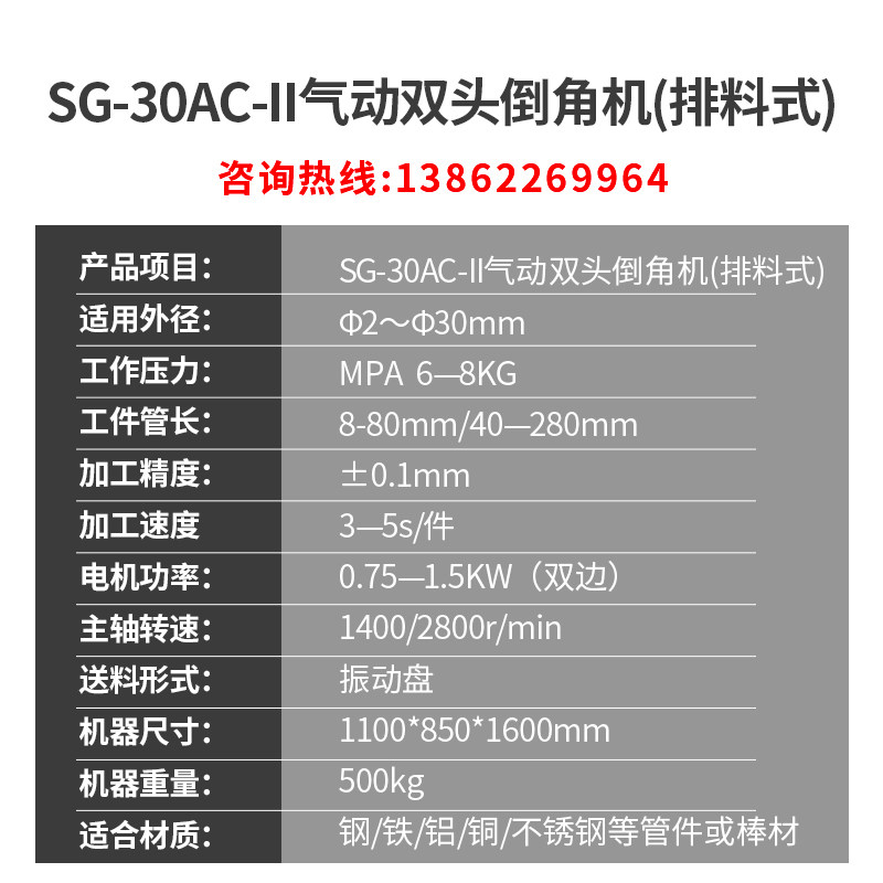 SG-30AC-II pneumatic double head chamfering machine SG-50AC-II pneumatic double head chamfering machine SG-80AC-II pneumatic double head chamfering machine SG-50Y-II