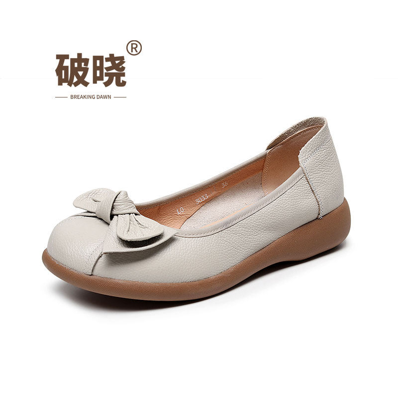Spring, summer and autumn women's shoes flat mother shoes shallow mouth peas soft bottom leather flat shoes round toe large size 4143
