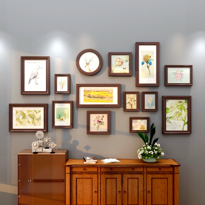 Solid wood photo frame Modern simple photo wall Photo frame wall Creative combination Living room Bedroom European style photo wall free hole
