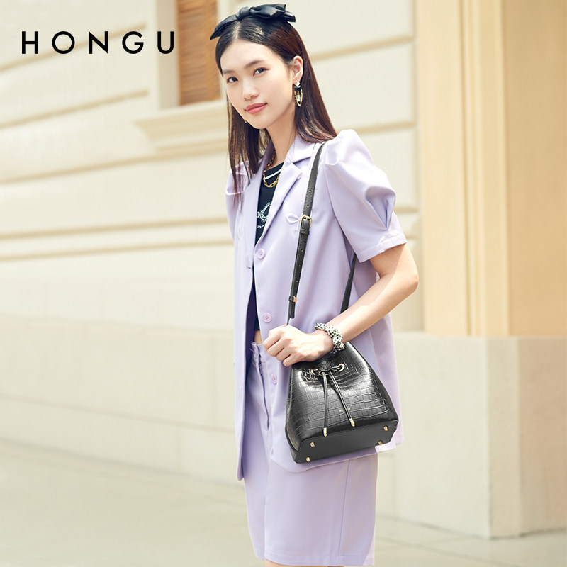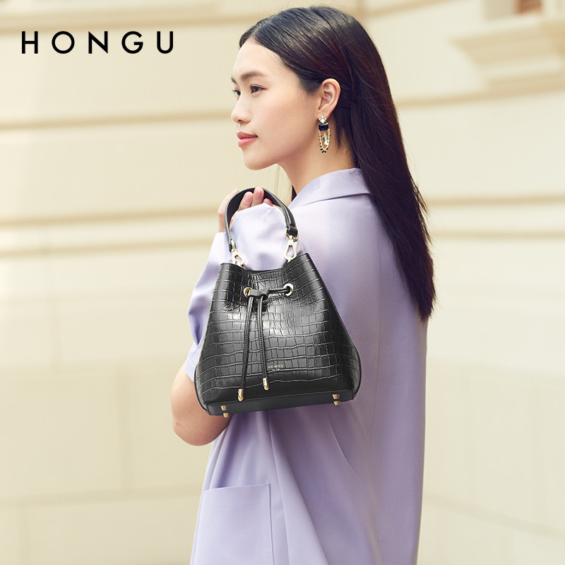 Red Valley Bag Woman 2022 new fashion headskin bucket bag drawn crocodile tattoo personality single shoulder pack 3920