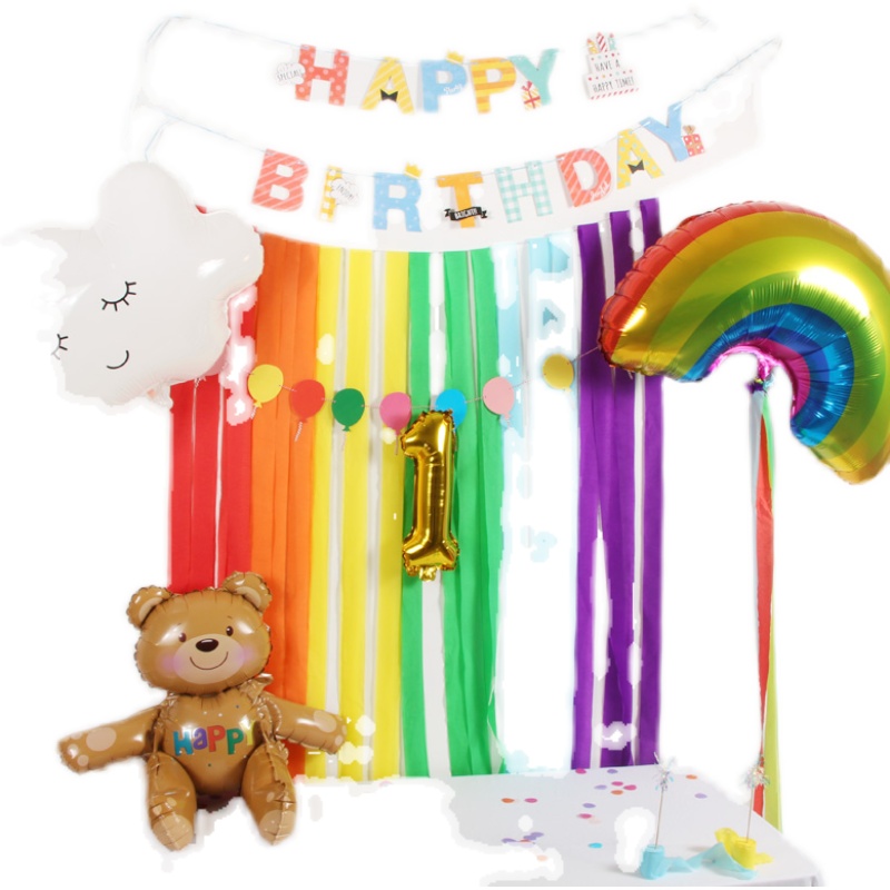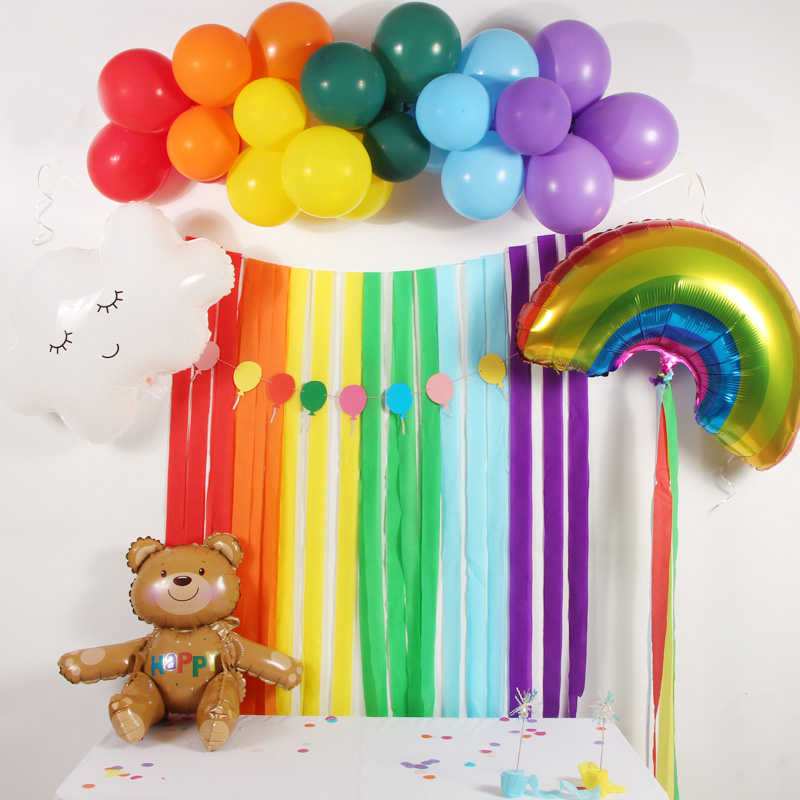 Six-1Children's Day Decorates Rainbow Baby's Anniversary Birthday in Korea Color Paper Roll Balloon Balloon Photo Background Wall