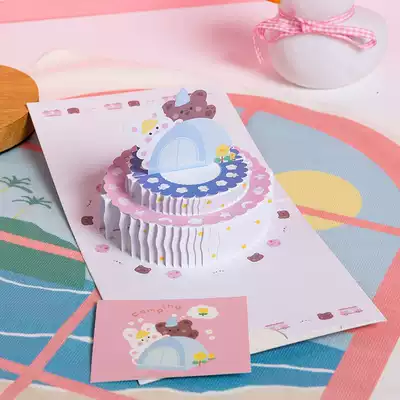 Birthday card stereo Children's Day cartoon ins3d cake creative diy gift blessing card small card envelope