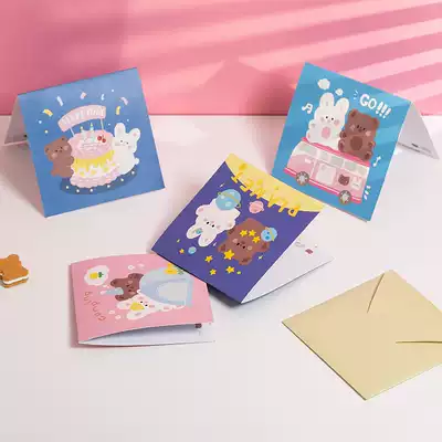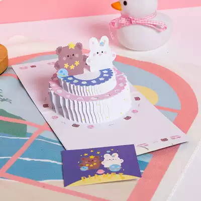 Solid color cartoon three fold greeting card (4 pack) ins cartoon three fold greeting card (4 pack) solid color rabbit triple fold greeting card (6 pack) three-dimensional blue cake bear (card envelope card
