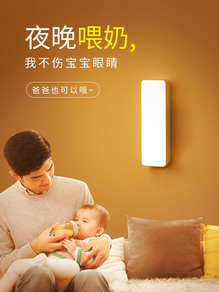 Small night light not plugged in electric baby nursing eye charge adsorption type headbed Bedroom sleep can be moved without power