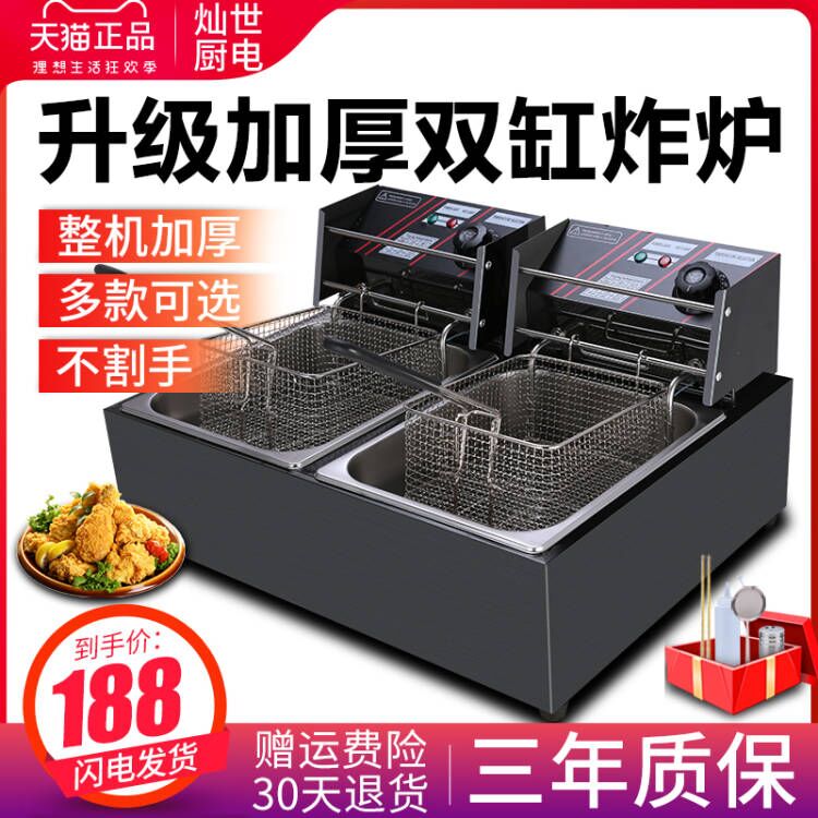 Frying Pan Commercial Electric Fryer Single Cylinder Twin-Cylinder Fried Chicken Oil Bar Equipment Fried Machine Thickened Tungsten Steel Electric Fryer