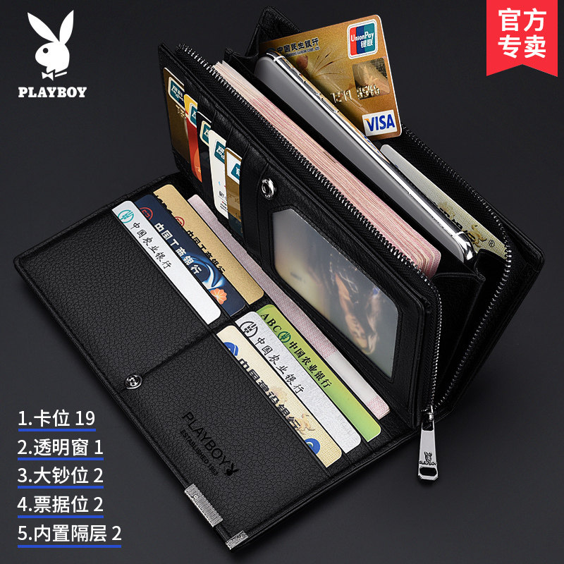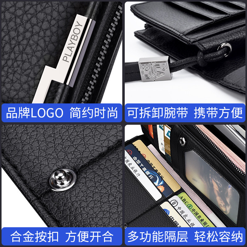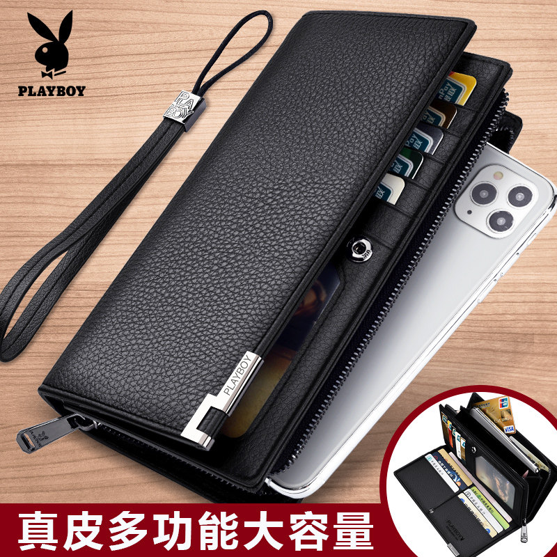 Floral Playboy handbag genuine leather long version wallet men tide card large capacity hand holding bag multifunctional card bag leather clip