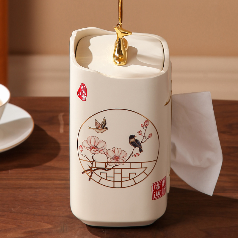 Home Living Room Upscale Creative Toilet Paper Box New Chinese Light Lavish Bedroom Paper Towels Box Accessories Napkins Box Hem