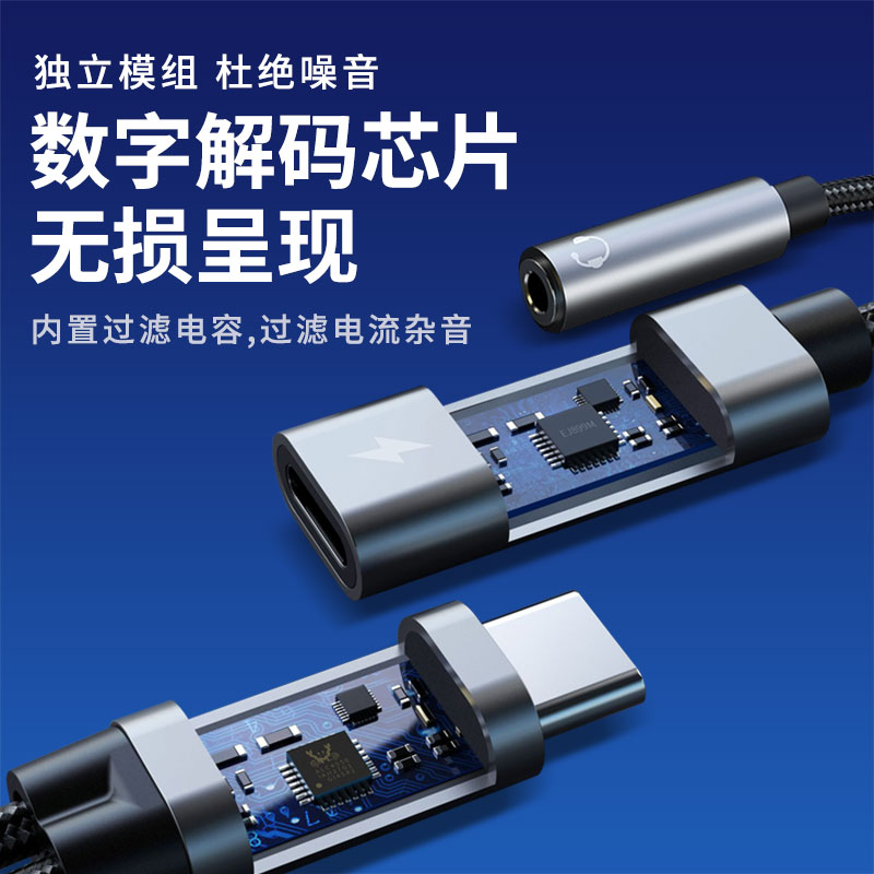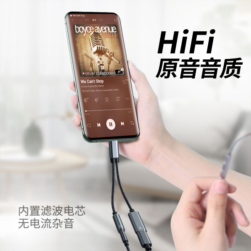 The headphone adapter is suitable for Xiaomi 13 12 11 10pro one-to-two conversion head Redmi k40 K50 converter typec to 3 5mm mobile phone listening to music and charging two-in-one